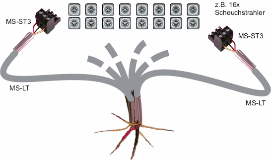 bis zu 4, 8, 16 oder 20 Scheuchstrahler versorgt werden. Diese